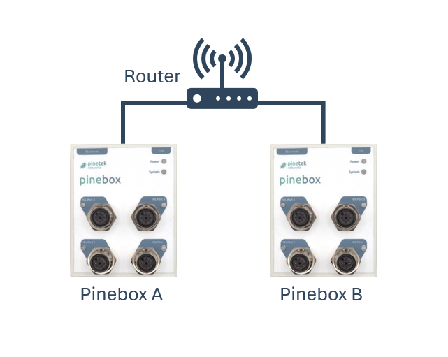 Ja, das ist per Zugriff über die JSON-Schnittstelle möglich. Die beiden Pinebox müssen hierbei über das Netzwerk miteinander verbunden sein, z.B. über einen Router oder per Switch.