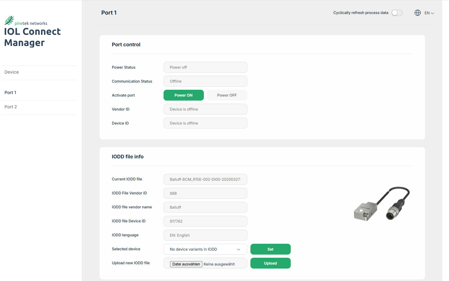 Anwendungssoftware für den IOL HAT mit Webinterface und IODD-Integration, Node-RED-Knotenerstellung, Datenbankintegration.